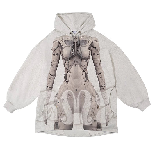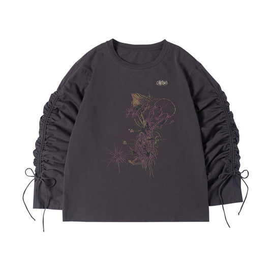 Grey Drawstring-Sleeve Oversized Sweatshirt
