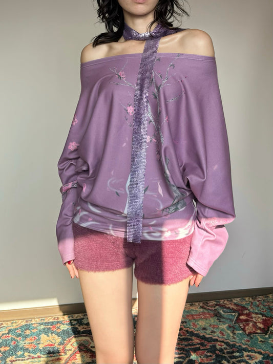 Wet tail glitch cupids Peachy Orchid Floral Cheongsam Shirt