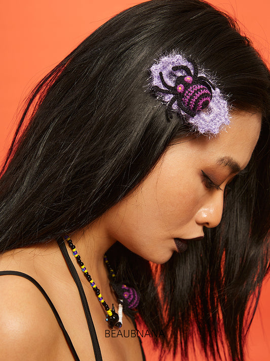 Kawaii Lavender Spider Hand Knitted Hair Clip