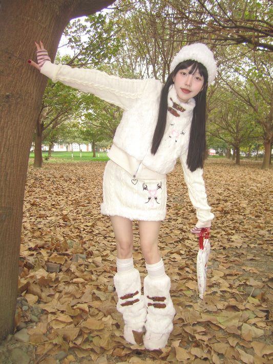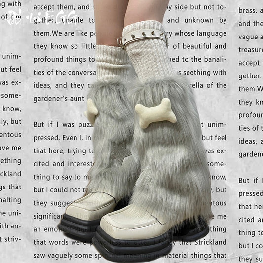 Harajuku Fluffy Long Fur Bunny White Leg Warmers
