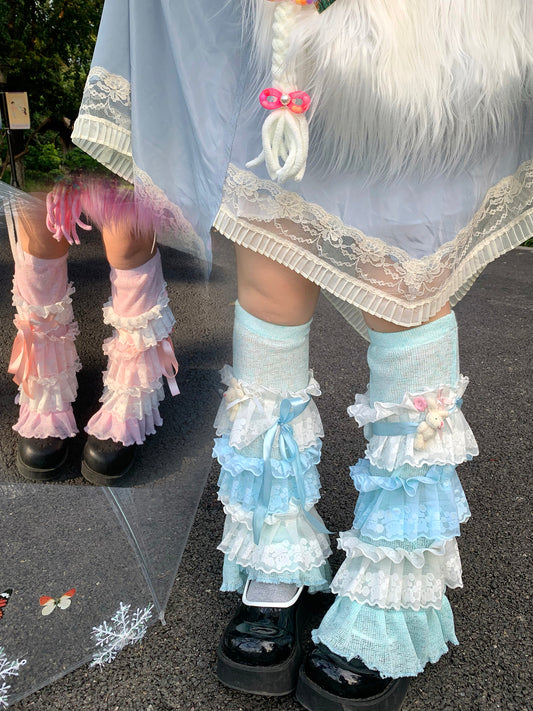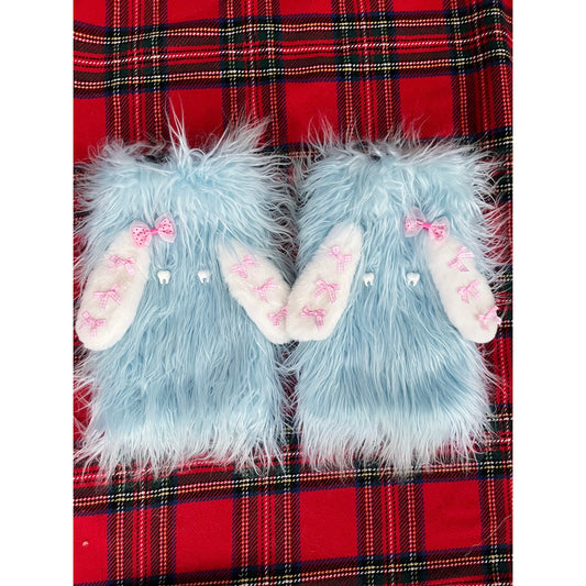 Pastel Blue Fluffy Tied-Up Leg Warmers