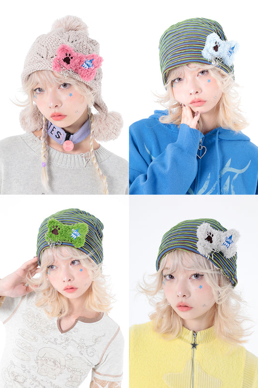 Kawaii Fleece Star Cat Ear Beanie Hat