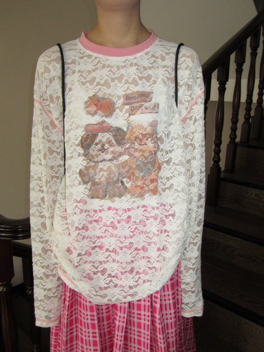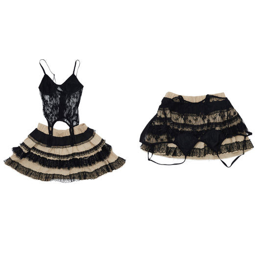 Acubi Asymmetric Mesh Lace Pleated Skirt