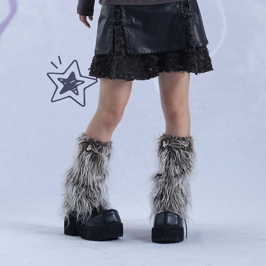 Harajuku Fluffy Long Fur Bunny White Leg Warmers