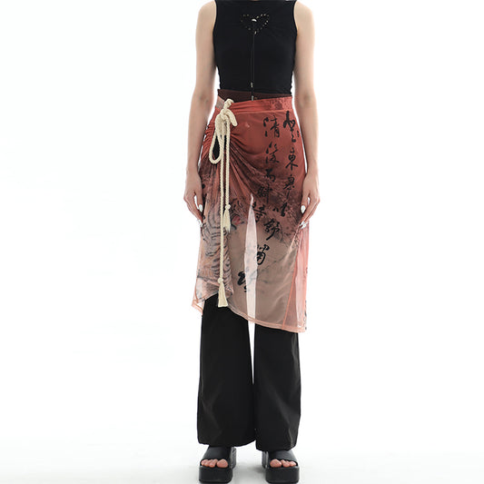 Sold outTiger Calligraphy Mesh Wrap Skirt