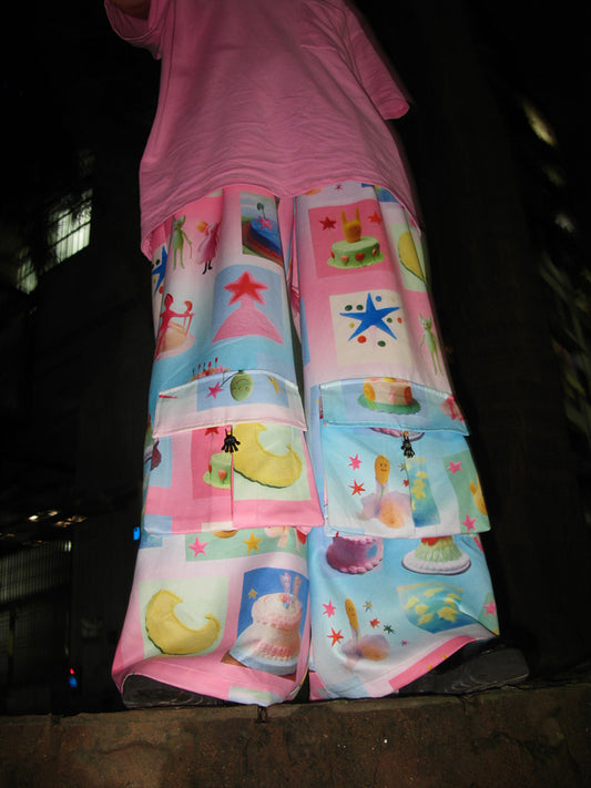 Harajuku Pink and Blue Cake Print Cargo Pants