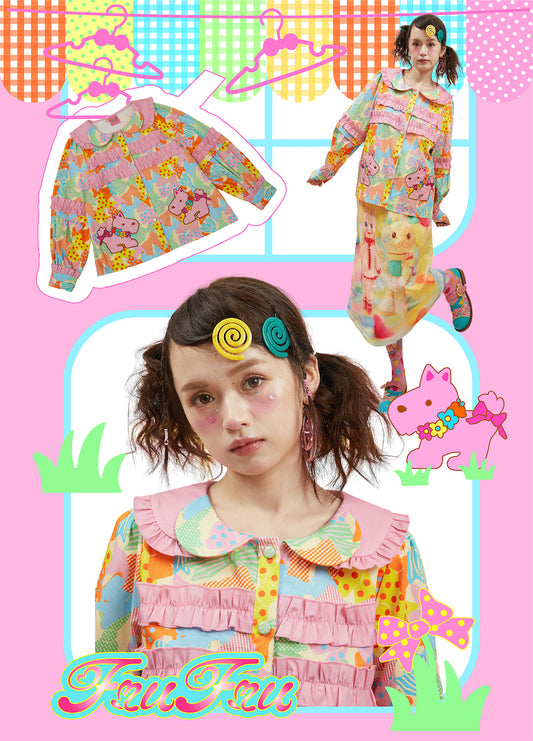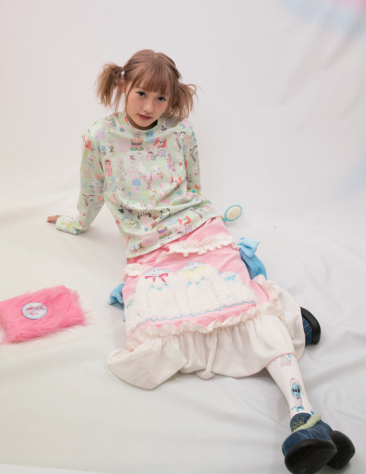 Puppy Print Long Sleeve Pastel Blue Shirt