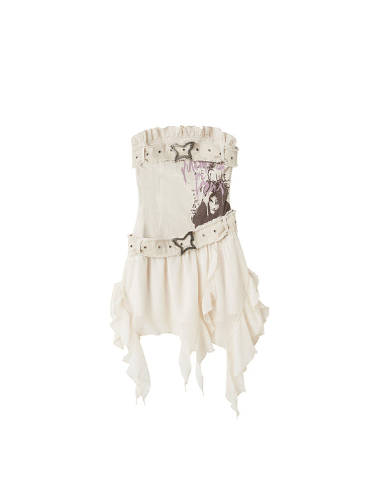 Off Shoulder Fairycore Asymmetric White Dress
