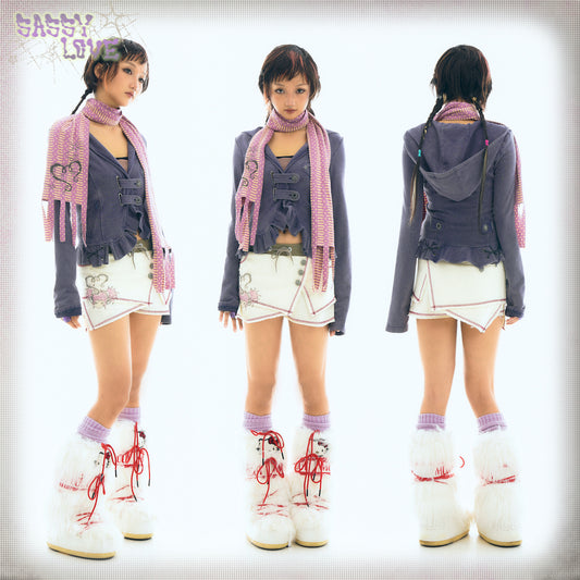 Sassy Love Retro Purple Distressed Ruffle Jacket