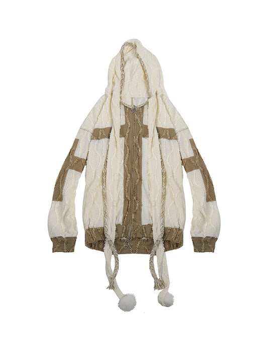 Oversized Grunge Cross Zip-Up Knit Hoodie