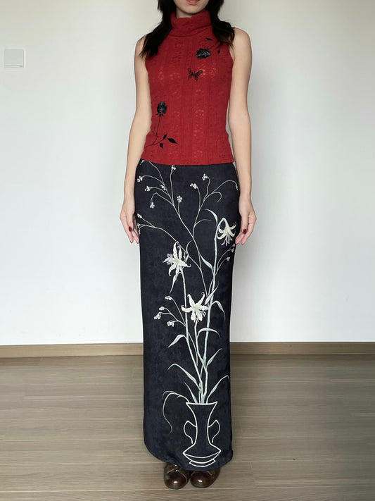 Sold outPeachy Orchid Floral Cheongsam Skirt