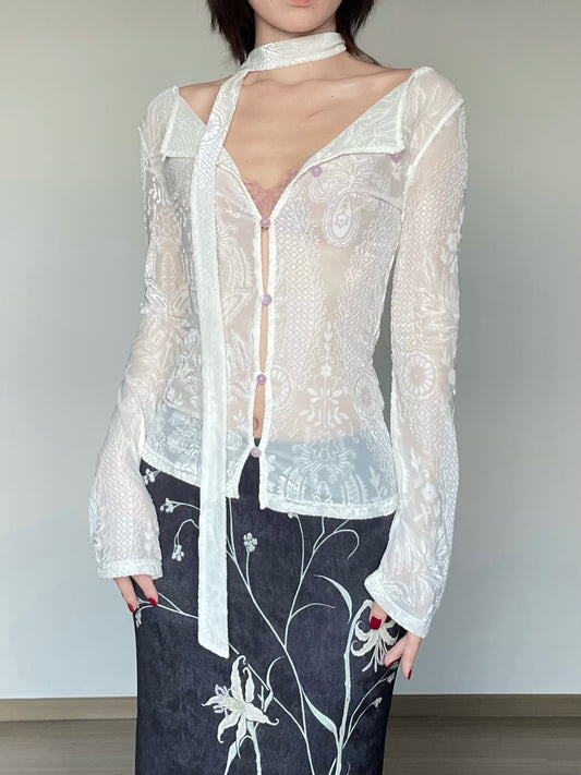 Floral Transparent Pearl Velvet 2-Way Shirt