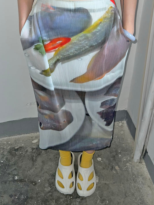 Acubi Asymmetric Mesh Lace Pleated Skirt