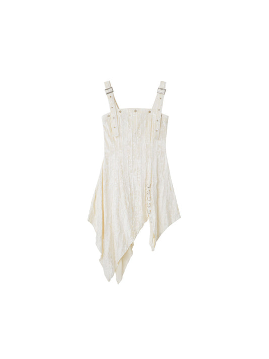 Ruffled Asymmetric Cotton Maxi Vest Dress