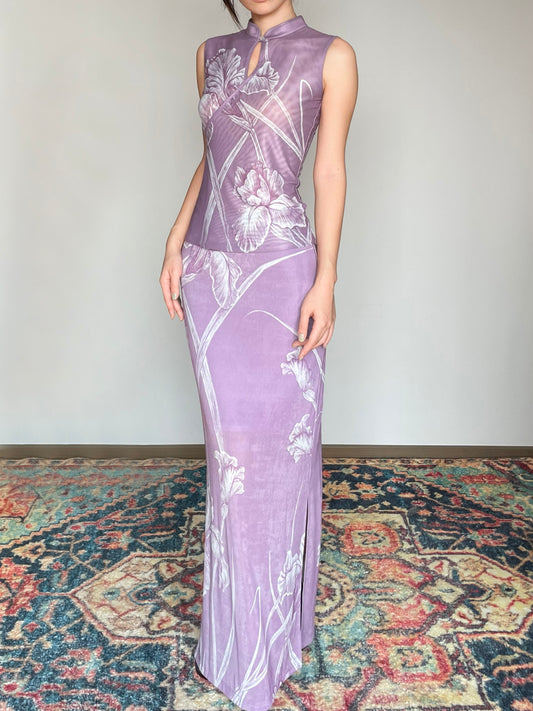 Lilac Floral Iris Cheongsam Shirt