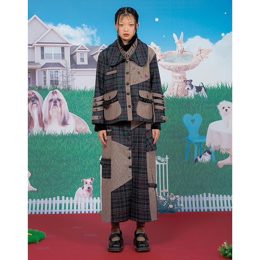 Petal Collar Woolen Brown Plaid Coat