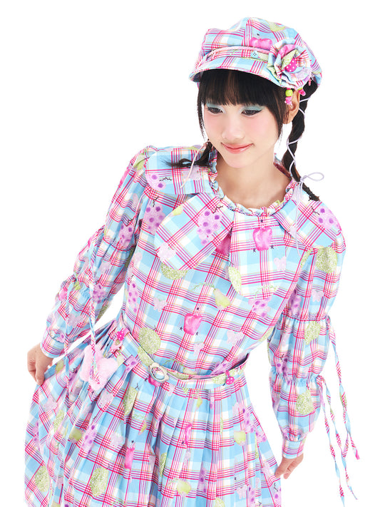 Kawaii Petal Collar Fruit Plaid Dress