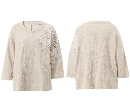 Flower Appliqué Linen Shirt