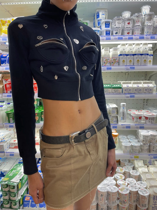 Heart Zip Vent Bralette Cropped Jacket