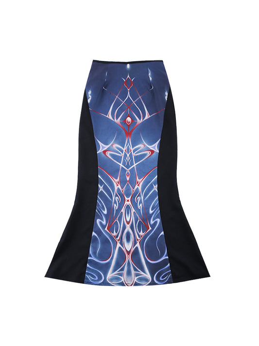 Sold outAbstract Pattern Fishtail Maxi Skirt