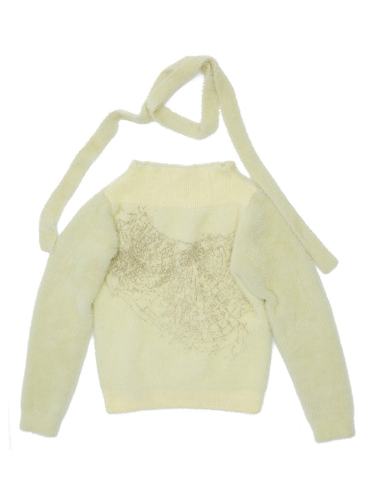 Pastel Yellow Off-Shoulder Woven Sweater With Scarf