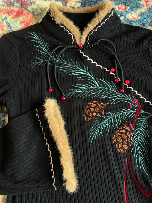 Anemone Bouquet Floral Shimmer Cheongsam Dress
