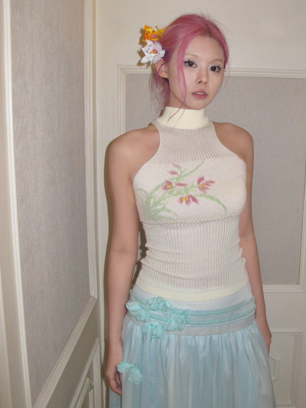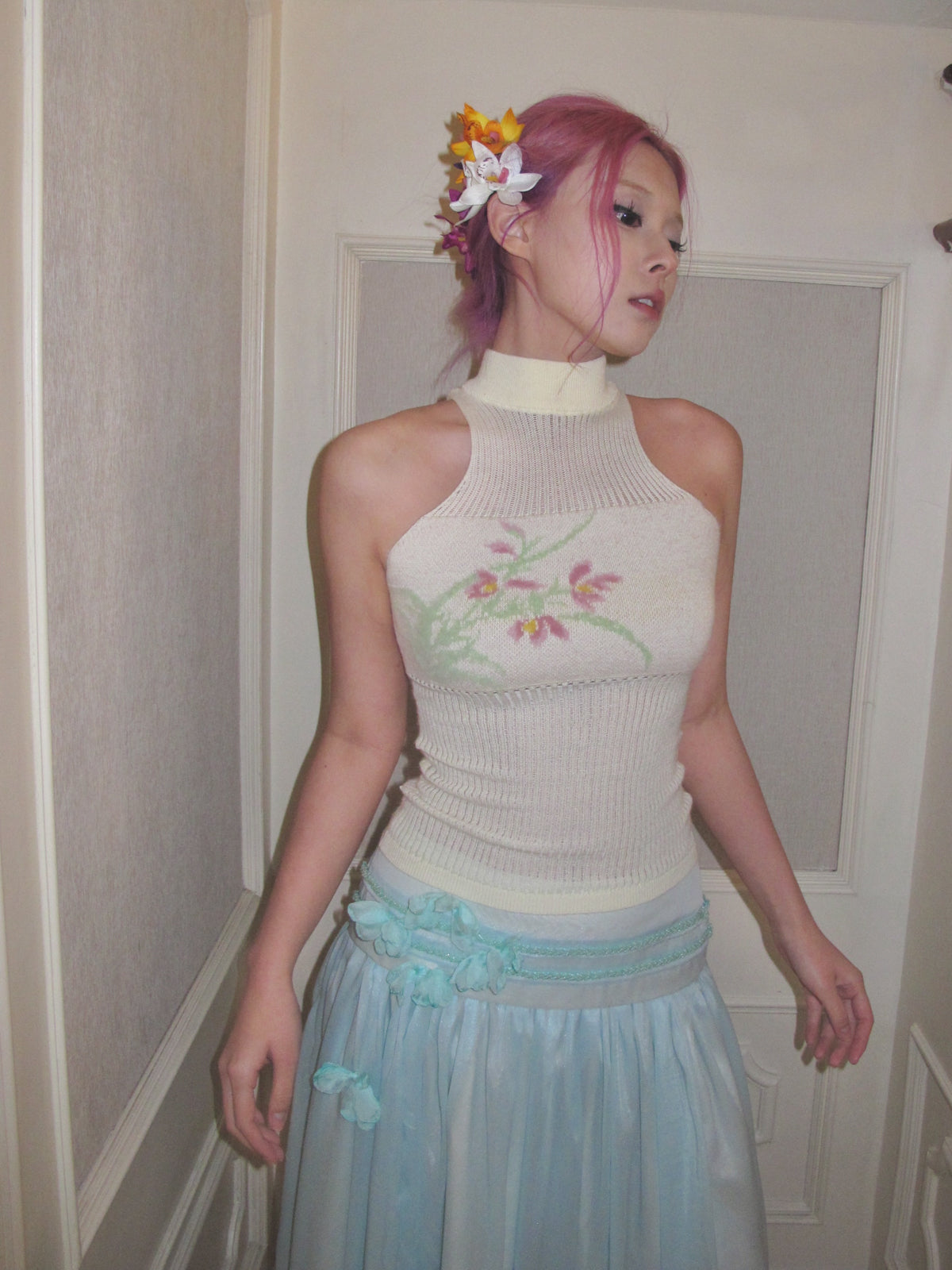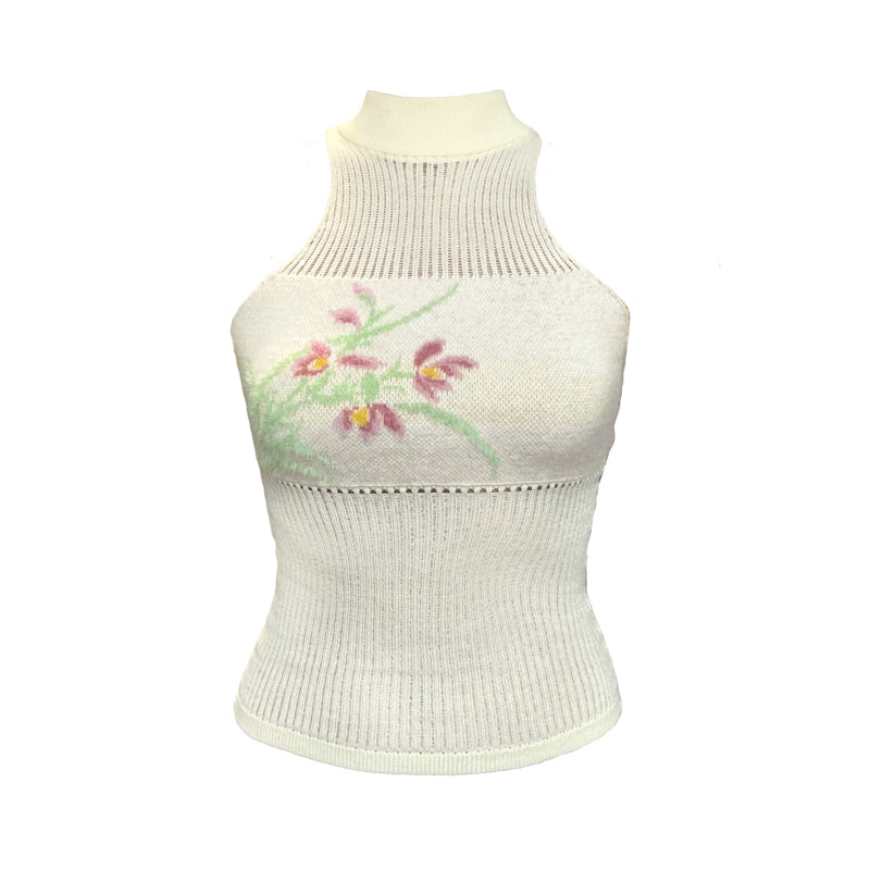 This Orchid Knit Shirt by Annie Armor is a beautiful blend of neo-Chinese style and modern fashion. The comfortable knit fabric is elevated by an embroidered orchid plant on the chest, adding a touch of femininity.