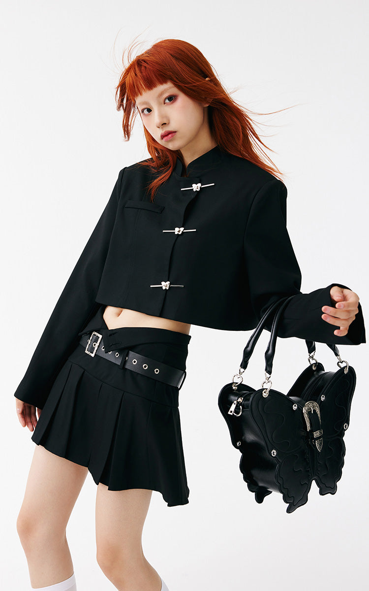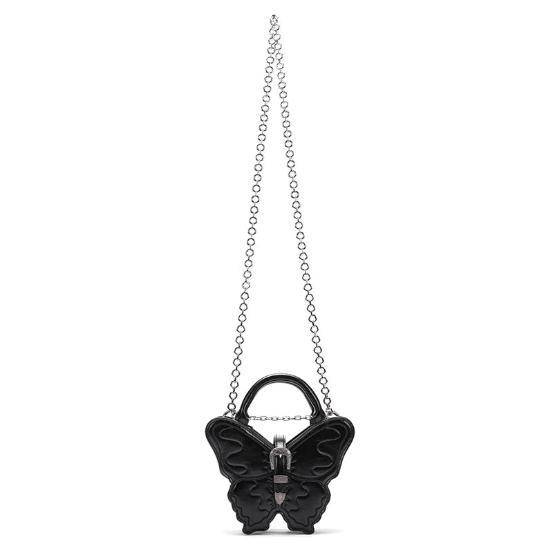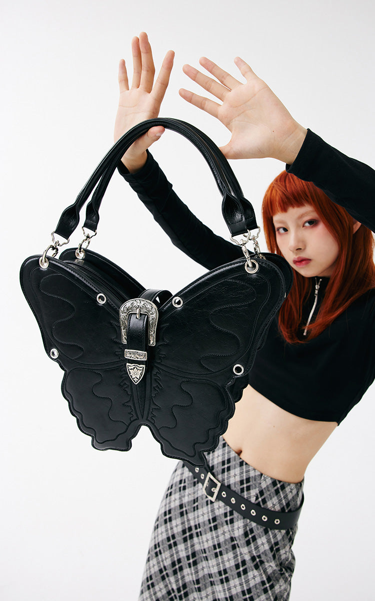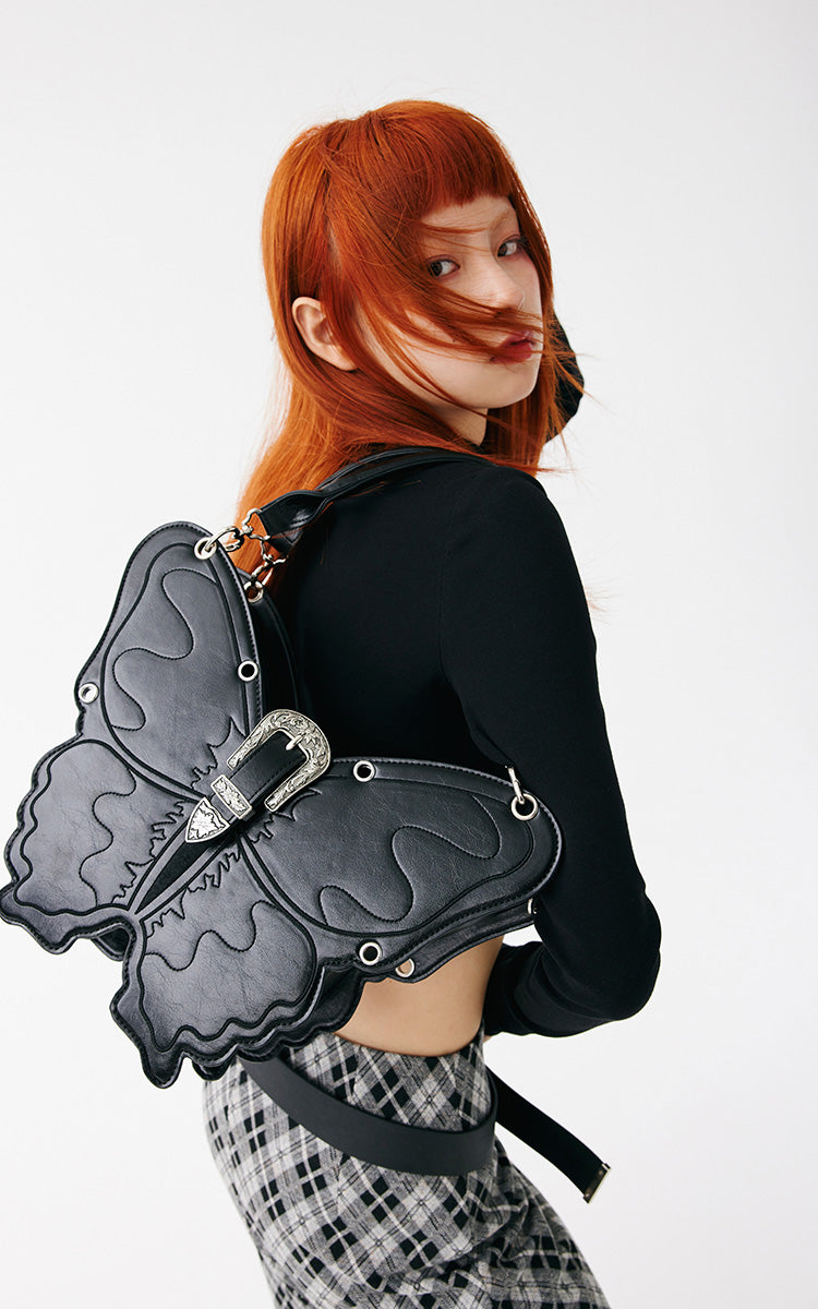 Expertly crafted with a 3D structured butterfly-shaped design, this vegan leather bag by Cigaberry features detailed butterfly wings texture stitching and a sleek black logo stamp. The adjustable and detachable crossbody strap offers versatility, while the zip closure keeps your belongings secure.