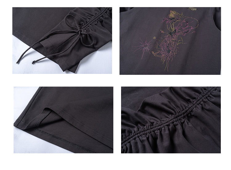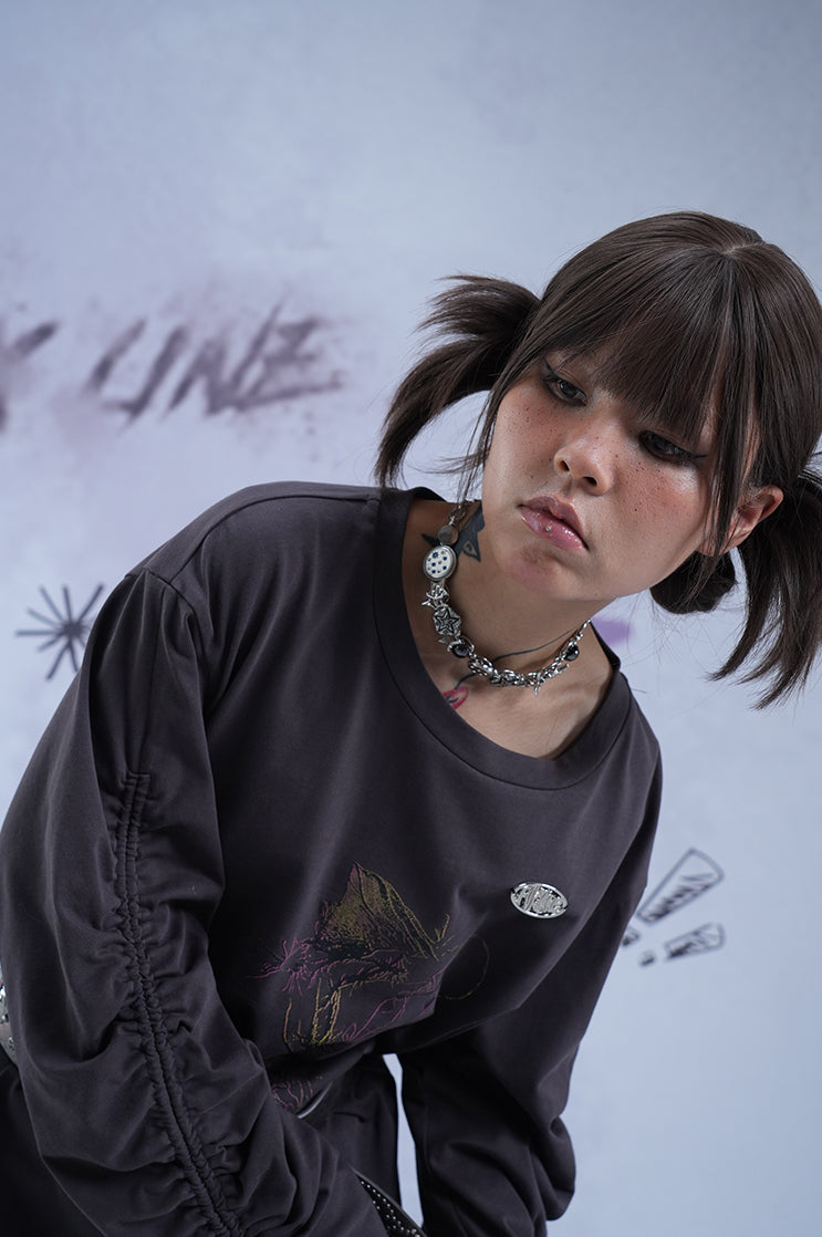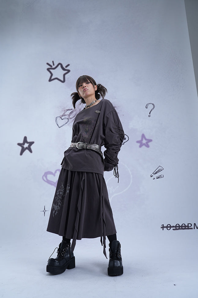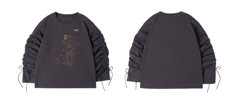 Grey Drawstring-Sleeve Oversized Sweatshirt